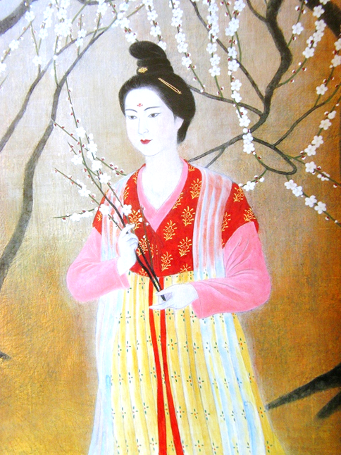1人目 楊容華、彼女は初唐の文壇四傑(王勃、廬照鄰、駱賓王、楊烱)の一人であった楊烱の姪であり、幼い時から詩文をよくした。ある時、楊烱は友人に容華が作った「鏡に向って朝の化粧をする」と題する詩を吟じたところ、その友から激賞された。ついで、楊烱は自分の詩数十首を吟じたところ、友は最初の詩に及ばないといったので、楊烱は冷や汗をかいた。この聡明な才女は女性たちのため大いに気を吐いたのであるが、残念なことに現在まで伝わっているのは僅かに次の一首だけである。