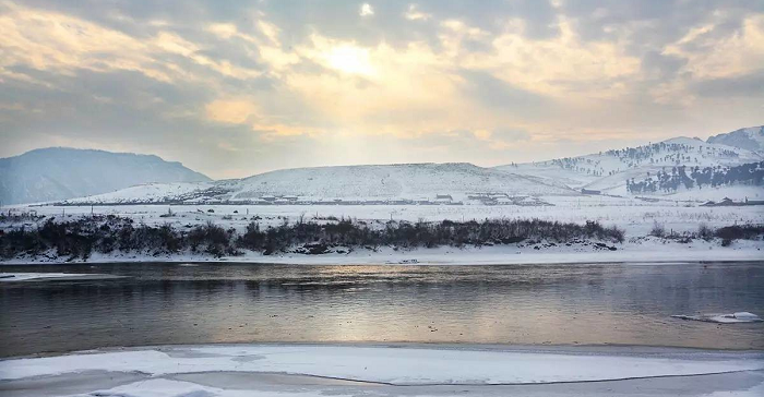 驚看天地白荒荒,瞥見青山舊夕陽。